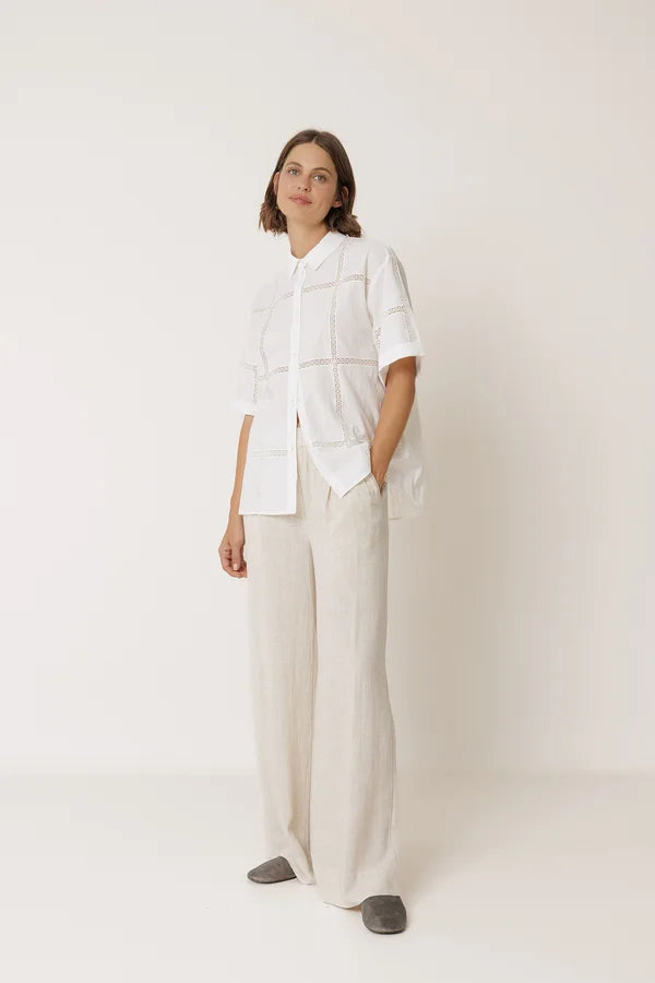 A classic, short-sleeved shirt in organic cotton and with inset lace details. A super-comfortable oversize fit, with a touch of sophistication.