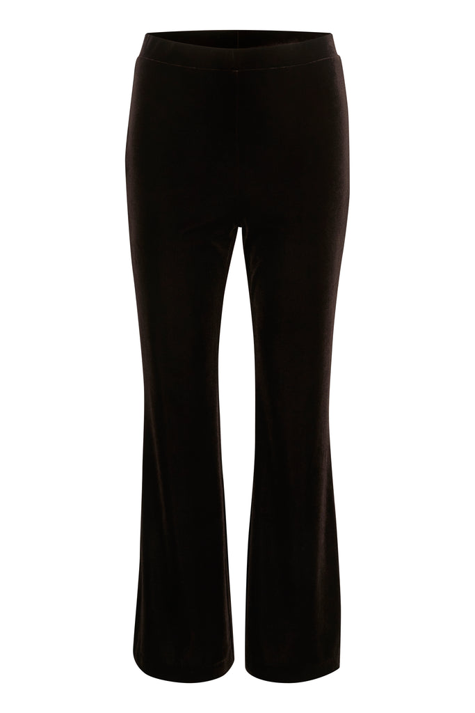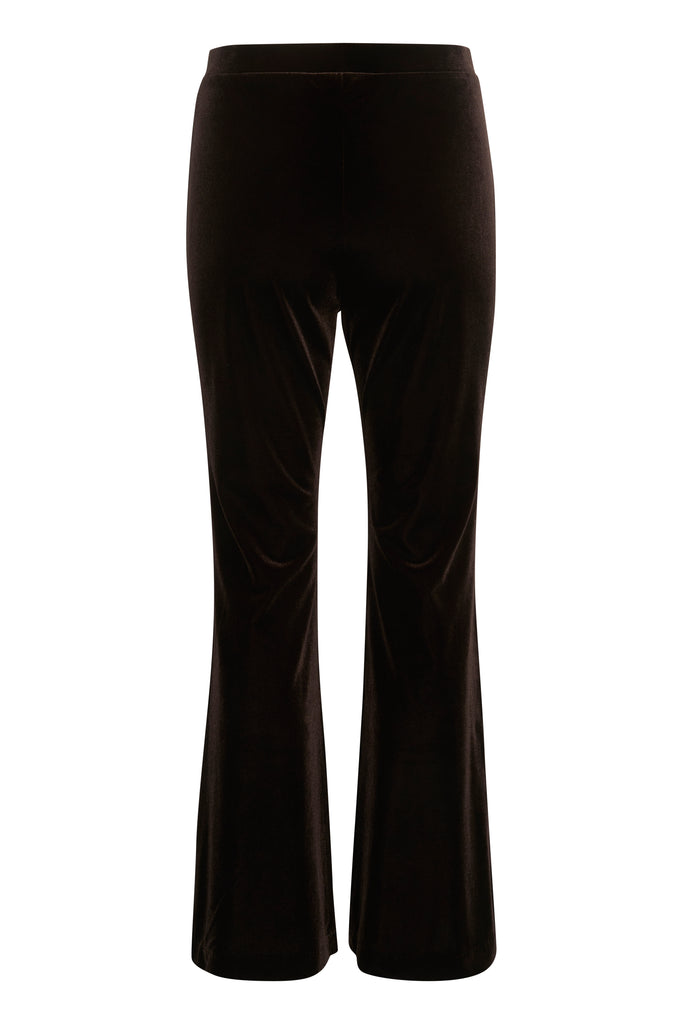 These Dorella velvet trousers in Mole feature an elasticated waist and wide-leg design, offering a comfortable stretch and a deep, luxurious color that stands out effortlessly.