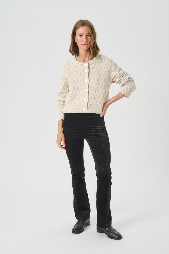 These high-waisted trousers feature a sleek straight leg silhouette, a discreet side zipper, and a smooth, pocket-free design for an effortlessly polished look. Easy fit for all day and night comfort.