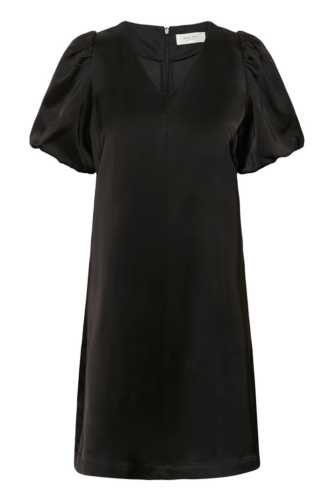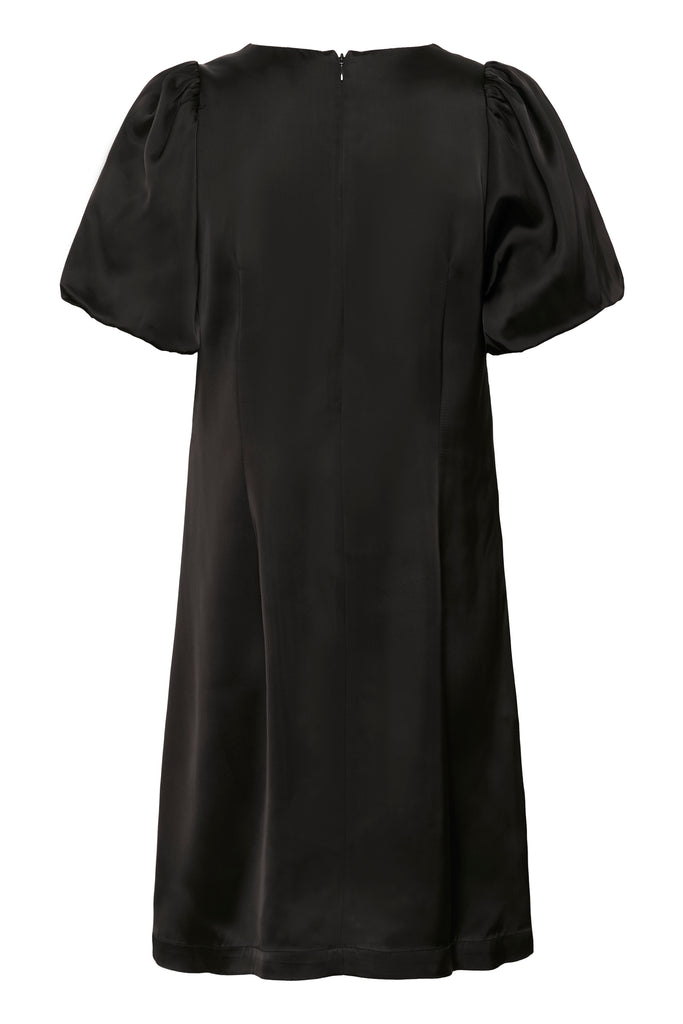 This short dress in satin features a simple A-line silhouette, short puff sleeves and a feminine V-neckline. A concealed zip ton the reverse. An elegant choice for both everyday wear and special occasions. Style it with tights and boots for a classic look.