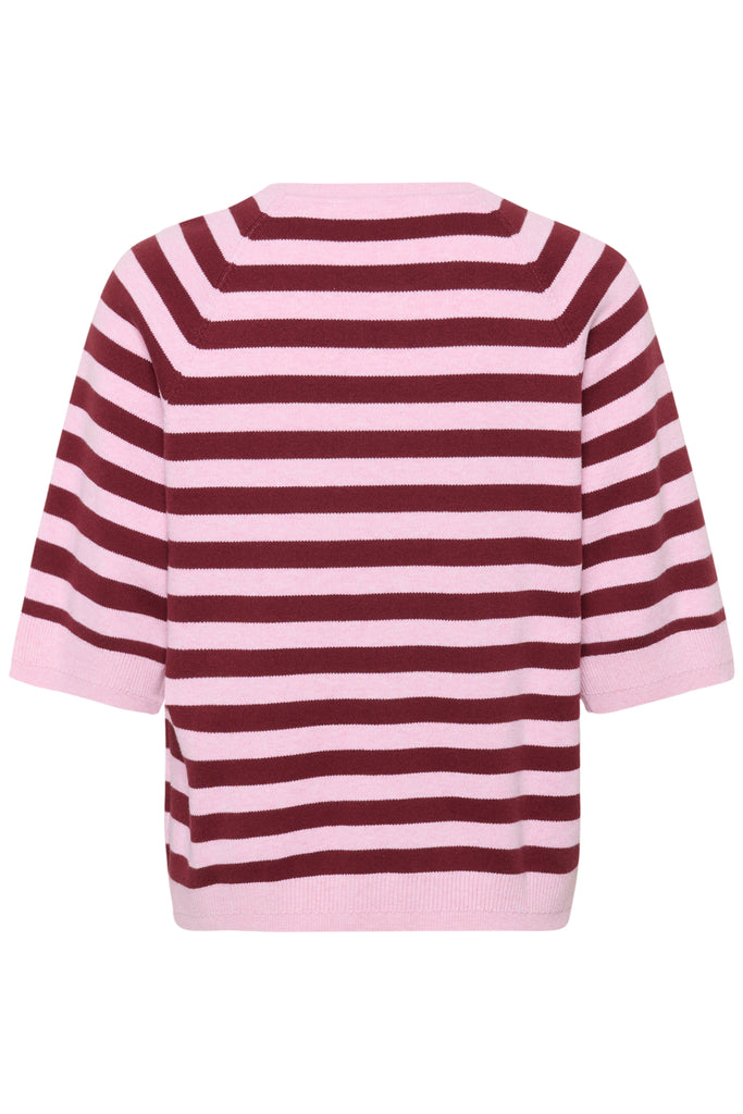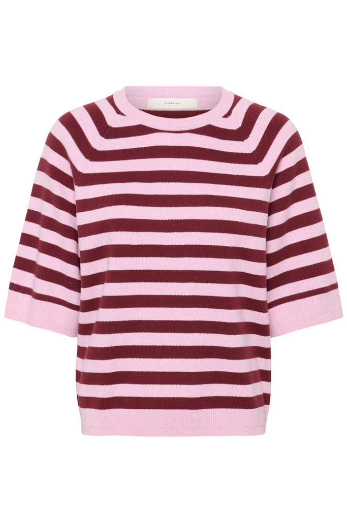 In Wear Madie Short Sleeve Cotton Knit, Pink/Zinfandel Stripe