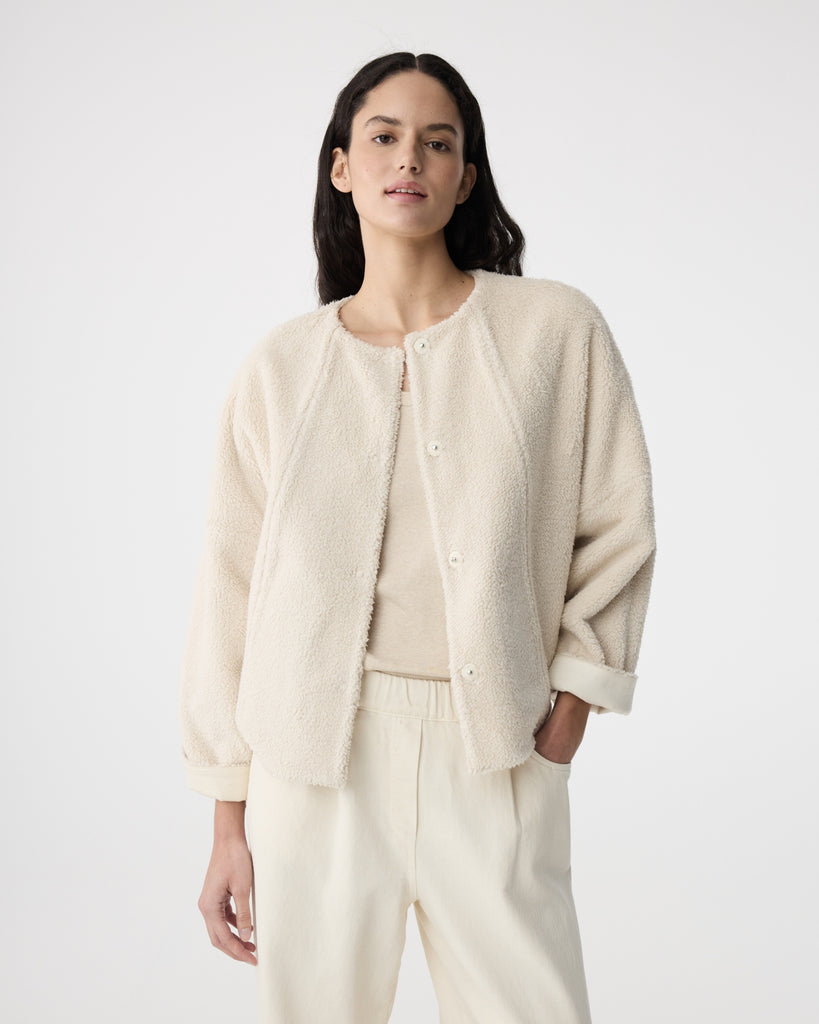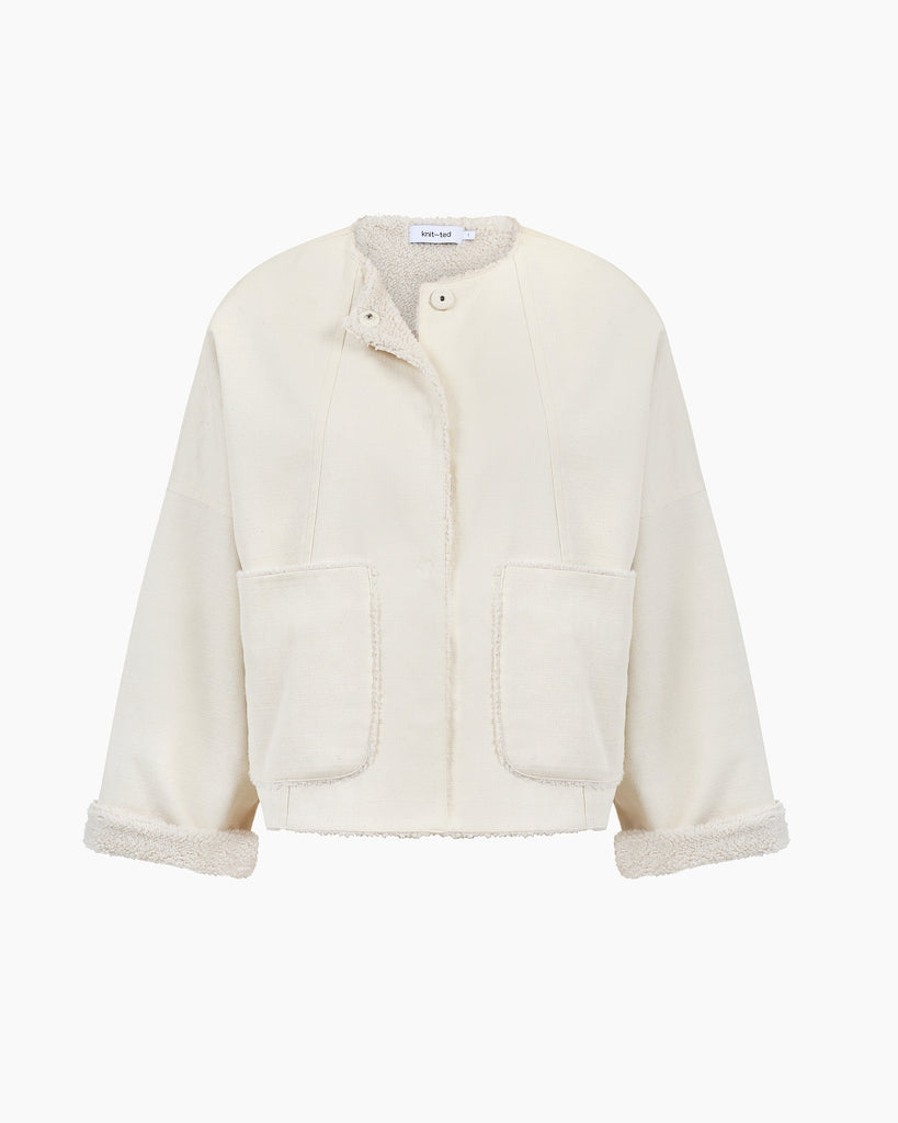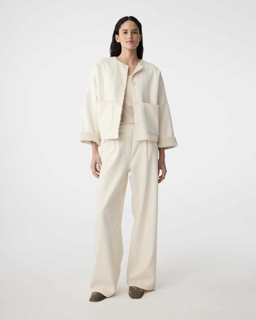 Composition: Outshell: 75% Tencel, 25% Linen. Sherpa: 100% Polyester