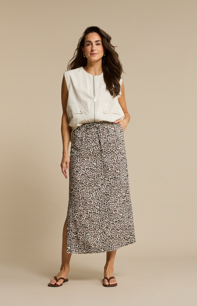 Elevate your wardrobe with this sophisticated leopard print skirt featuring an elasticated waistband with drawstring and pockets. Crafted from a breathable viscose and linen blend. Matching Claudette shorts and Nora blouse in the same print, available instore and online.