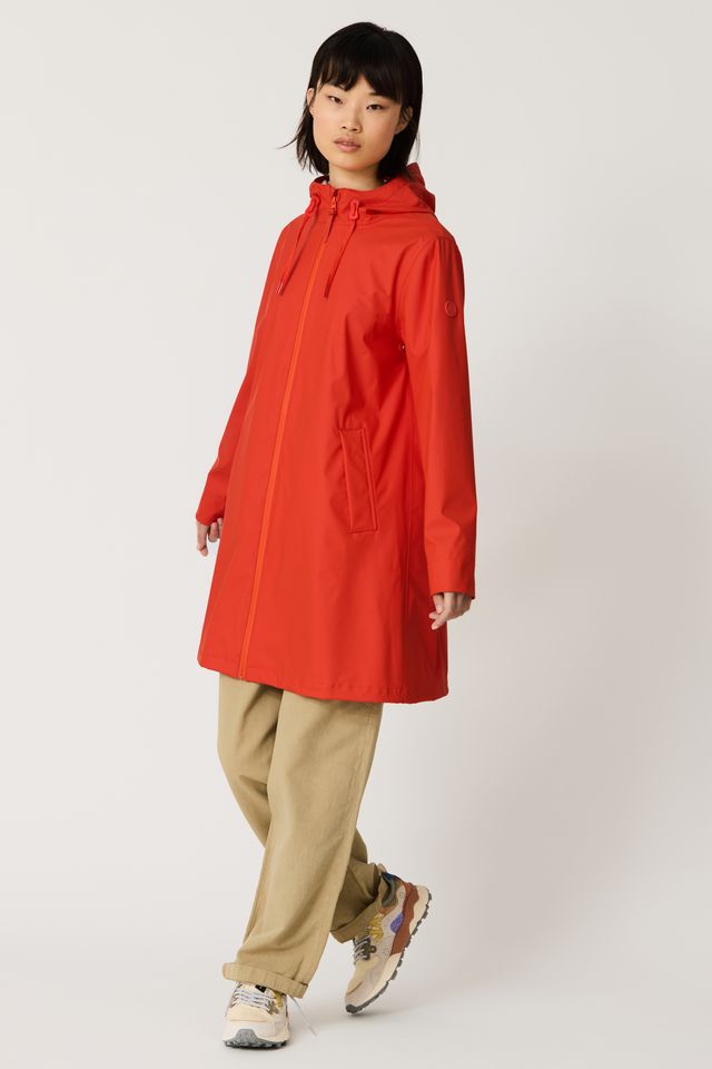 Designed for daily use in transitional seasons, the Nuovola rain jacket features a pleat across the back that provides a unique a-shaped fit. Mid-thigh length adds coverage and is complemented by a taped zip through front and wind cuffs for extra protection against unpredictable weather.